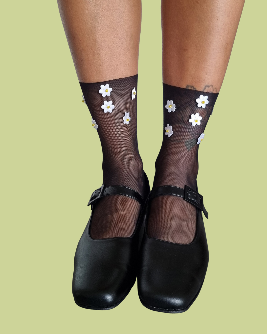 Medias de tul bordadas con apliques y piedra.