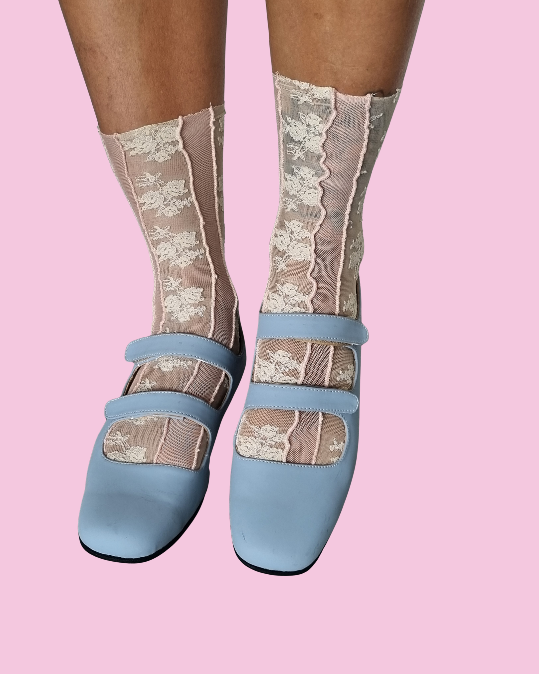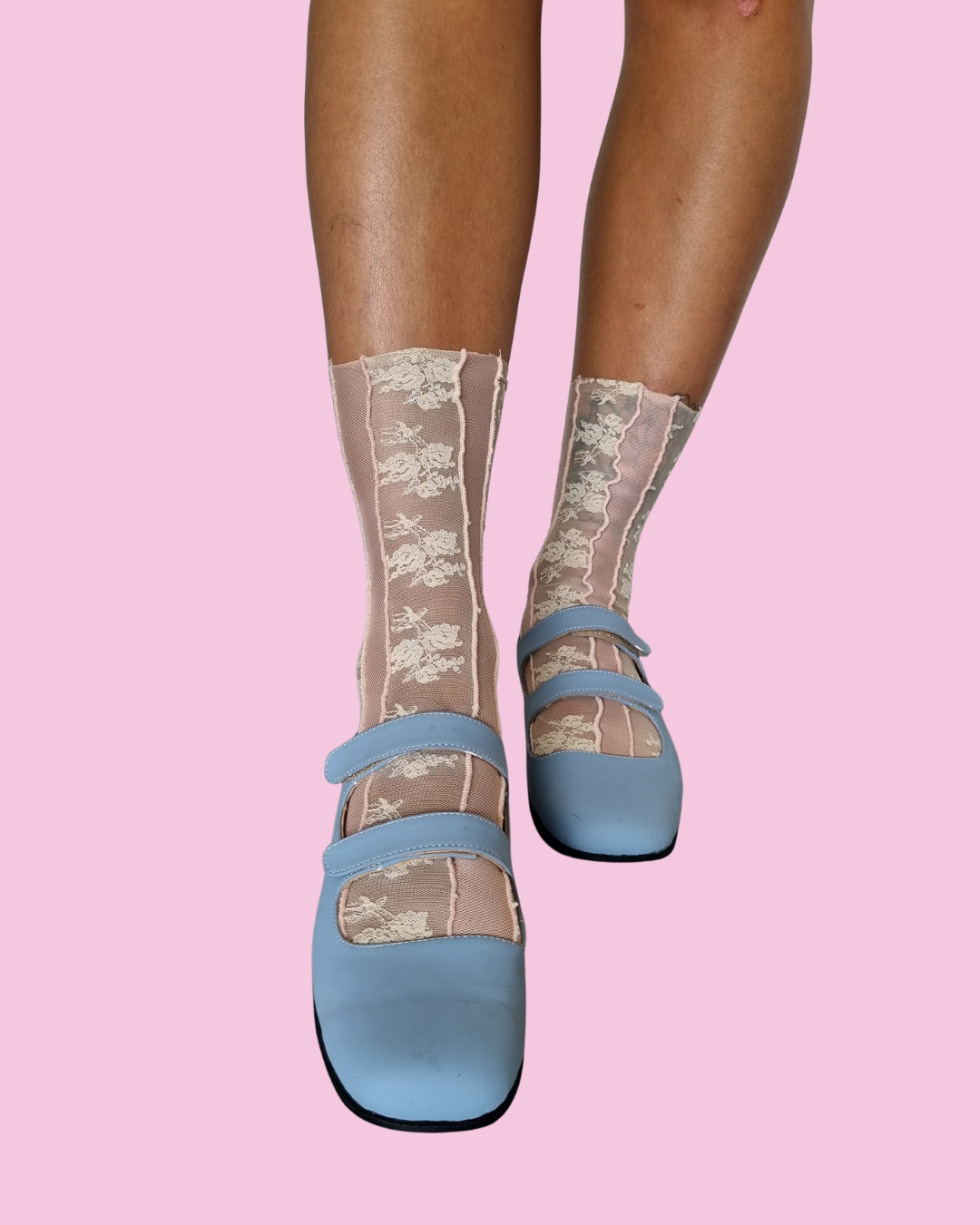 Medias de encaje y microtul confeccionadas con recortes de tela.