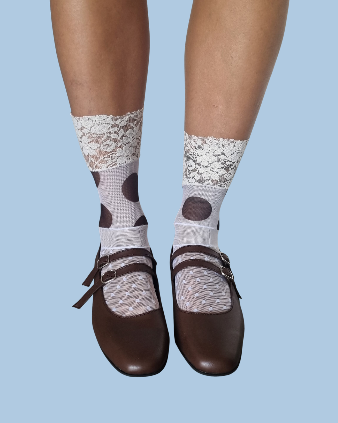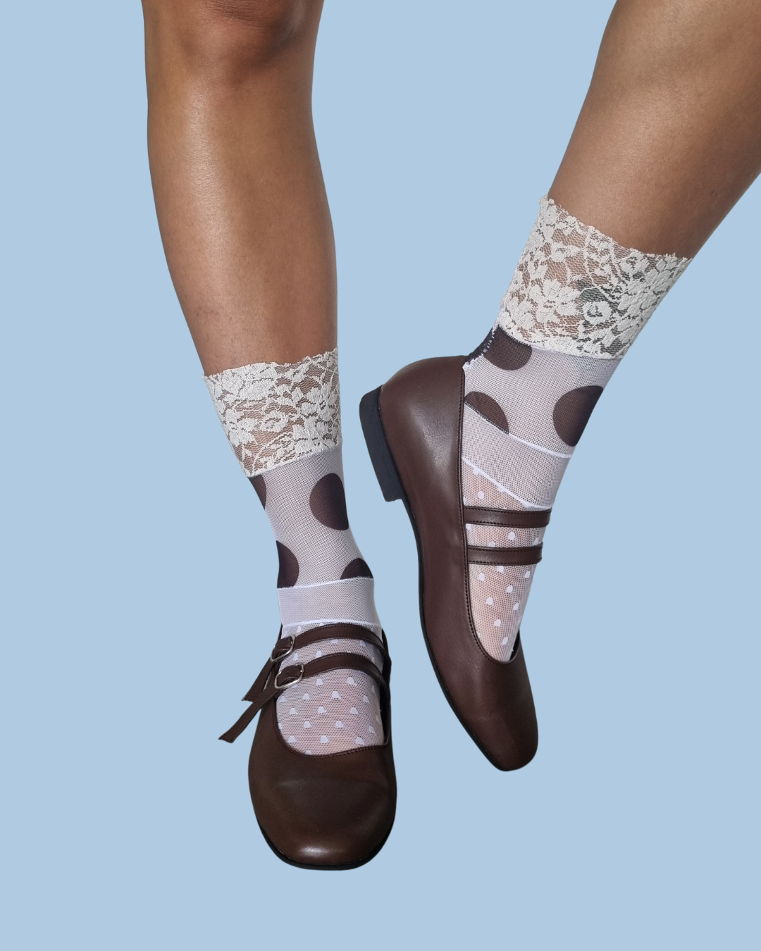 Medias de encaje y microtul confeccionadas con recortes de tela.